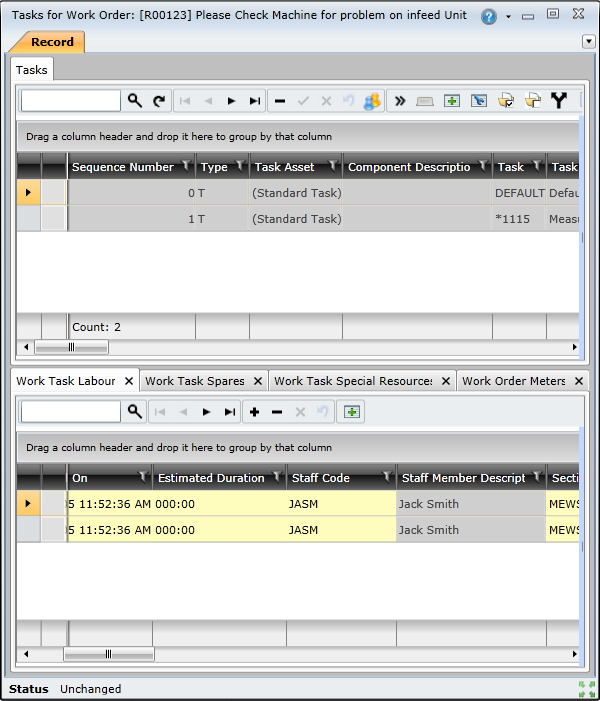 Add feedback about each Work Order Task and the Labour, Spares and Special Resources used.