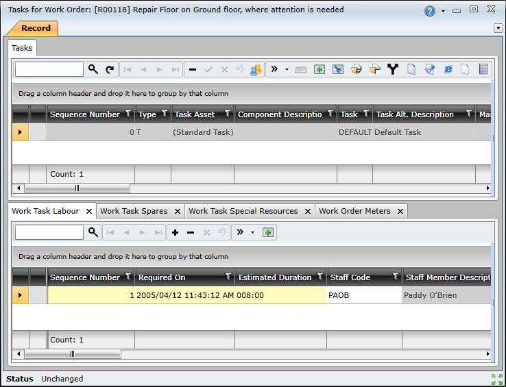The Task’s Alternative description is inherited from the Asset Task on which the WO Task is based. |
