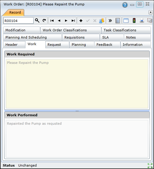 Add details about the Work Required before the work is performed, and add Work Performed details after the work is performed.