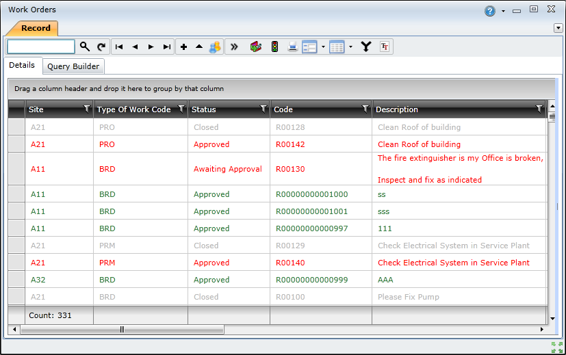 2. Apply Query Builder criteria to limit the number of Work Orders that are downloaded and displayed.